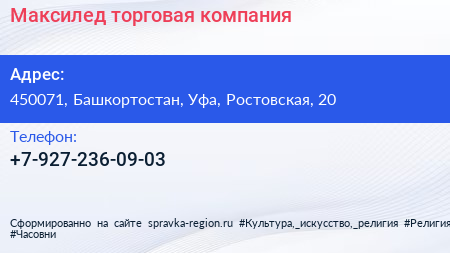 Максилед, торговая компания по адресу 450071, Башкортостан, Уфа, Ростовская, 20 в дальнейшем Организация, размещена в следующих категориях: