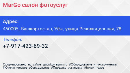 MarGo, салон фотоуслуг по адресу 450005, Башкортостан, Уфа, улица Революционная, 78 в дальнейшем Организация, размещена в следующих категориях: