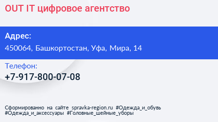 OUT IT, цифровое агентство по адресу 450064, Башкортостан, Уфа, Мира, 14 в дальнейшем Организация, размещена в следующих категориях: