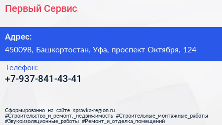 Первый Сервис по адресу 450098, Башкортостан, Уфа, проспект Октября, 124 в дальнейшем Организация, размещена в следующих категориях: