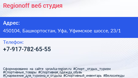 Regionoff, веб-студия по адресу 450104, Башкортостан, Уфа, Уфимское шоссе, 23/1 в дальнейшем Организация, размещена в следующих категориях: