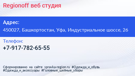 Regionoff, веб-студия по адресу 450027, Башкортостан, Уфа, Индустриальное шоссе, 26 в дальнейшем Организация, размещена в следующих категориях: