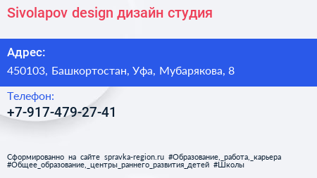 Sivolapov-design, дизайн-студия по адресу 450103, Башкортостан, Уфа, Мубарякова, 8 в дальнейшем Организация, размещена в следующих категориях: