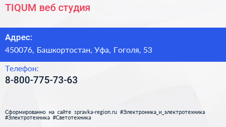 TIQUM, веб-студия по адресу 450076, Башкортостан, Уфа, Гоголя, 53 в дальнейшем Организация, размещена в следующих категориях: