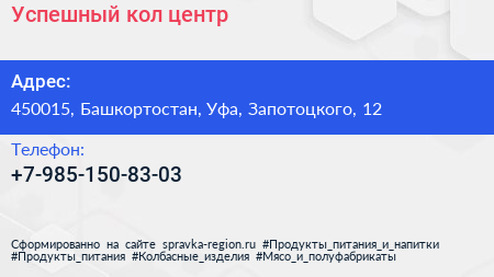 Успешный, кол-центр по адресу 450015, Башкортостан, Уфа, Запотоцкого, 12 в дальнейшем Организация, размещена в следующих категориях: