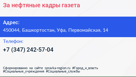 За нефтяные кадры, газета по адресу 450044, Башкортостан, Уфа, Первомайская, 14 в дальнейшем Организация, размещена в следующих категориях: