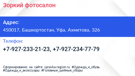 Зоркий, фотосалон по адресу 450017, Башкортостан, Уфа, Ахметова, 326 в дальнейшем Организация, размещена в следующих категориях: