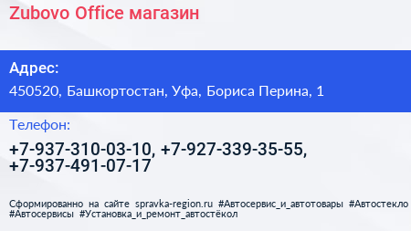 Zubovo Office, магазин по адресу 450520, Башкортостан, Уфа, Бориса Перина, 1 в дальнейшем Организация, размещена в следующих категориях: