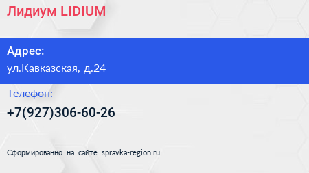 Лидиум (LIDIUM) по адресу ул.Кавказская, д.24 в дальнейшем Организация, размещена в следующих категориях: