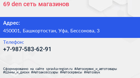 69 den, сеть магазинов по адресу 450001, Башкортостан, Уфа, Бессонова, 3 в дальнейшем Организация, размещена в следующих категориях: