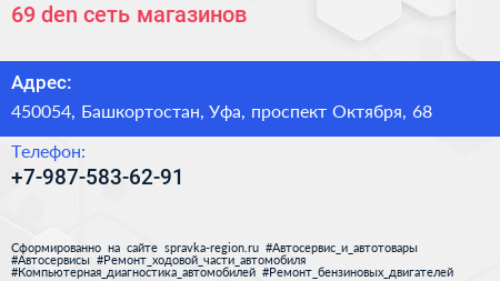 69 den, сеть магазинов по адресу 450054, Башкортостан, Уфа, проспект Октября, 68 в дальнейшем Организация, размещена в следующих категориях: