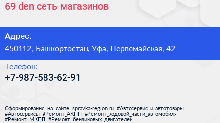 69 den, сеть магазинов по адресу 450112, Башкортостан, Уфа, Первомайская, 42 в дальнейшем Организация, размещена в следующих категориях: