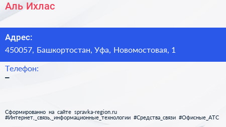 Аль Ихлас по адресу 450057, Башкортостан, Уфа, Новомостовая, 1 в дальнейшем Организация, размещена в следующих категориях: