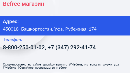 Befree, магазин по адресу 450018, Башкортостан, Уфа, Рубежная, 174 в дальнейшем Организация, размещена в следующих категориях: