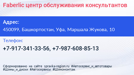 Faberlic, центр обслуживания консультантов по адресу 450099, Башкортостан, Уфа, Маршала Жукова, 10 в дальнейшем Организация, размещена в следующих категориях: