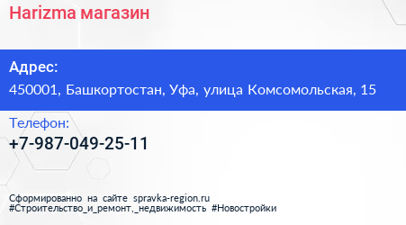 Harizma, магазин по адресу 450001, Башкортостан, Уфа, улица Комсомольская, 15 в дальнейшем Организация, размещена в следующих категориях: