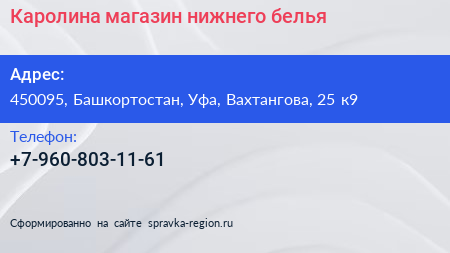 Каролина, магазин нижнего белья по адресу 450095, Башкортостан, Уфа, Вахтангова, 25 к9 в дальнейшем Организация, размещена в следующих категориях: