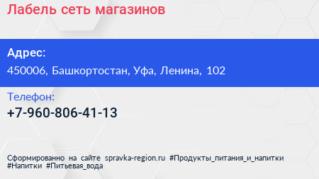 Лабель, сеть магазинов по адресу 450006, Башкортостан, Уфа, Ленина, 102 в дальнейшем Организация, размещена в следующих категориях:
