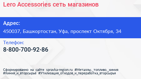 Lero Accessories, сеть магазинов по адресу 450037, Башкортостан, Уфа, проспект Октября, 34 в дальнейшем Организация, размещена в следующих категориях: