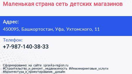 Маленькая страна, сеть детских магазинов по адресу 450095, Башкортостан, Уфа, Ухтомского, 11 в дальнейшем Организация, размещена в следующих категориях: