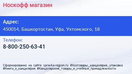 Носкофф, магазин по адресу 450014, Башкортостан, Уфа, Ухтомского, 18 в дальнейшем Организация, размещена в следующих категориях: