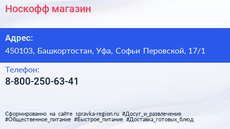 Носкофф, магазин по адресу 450103, Башкортостан, Уфа, Софьи Перовской, 17/1 в дальнейшем Организация, размещена в следующих категориях: