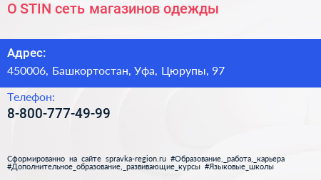 O`STIN, сеть магазинов одежды по адресу 450006, Башкортостан, Уфа, Цюрупы, 97 в дальнейшем Организация, размещена в следующих категориях: