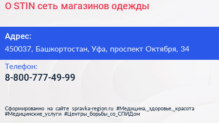 O`STIN, сеть магазинов одежды по адресу 450037, Башкортостан, Уфа, проспект Октября, 34 в дальнейшем Организация, размещена в следующих категориях: