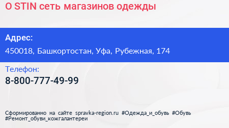 O`STIN, сеть магазинов одежды по адресу 450018, Башкортостан, Уфа, Рубежная, 174 в дальнейшем Организация, размещена в следующих категориях: