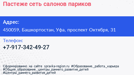 Пастеже, сеть салонов париков по адресу 450059, Башкортостан, Уфа, проспект Октября, 31 в дальнейшем Организация, размещена в следующих категориях:
