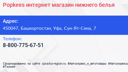 Popkees, интернет-магазин нижнего белья по адресу 450047, Башкортостан, Уфа, Сун-Ят-Сена, 7 в дальнейшем Организация, размещена в следующих категориях: