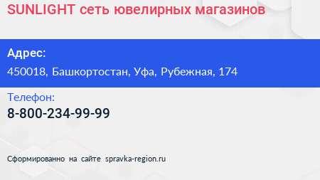 SUNLIGHT, сеть ювелирных магазинов по адресу 450018, Башкортостан, Уфа, Рубежная, 174 в дальнейшем Организация, размещена в следующих категориях: