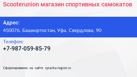 Scooterunion, магазин спортивных самокатов по адресу 450076, Башкортостан, Уфа, Свердлова, 90 в дальнейшем Организация, размещена в следующих категориях: