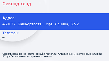 Секонд-хенд по адресу 450077, Башкортостан, Уфа, Ленина, 39/2 в дальнейшем Организация, размещена в следующих категориях: