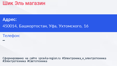 Шик Эль, магазин по адресу 450014, Башкортостан, Уфа, Ухтомского, 16 в дальнейшем Организация, размещена в следующих категориях: