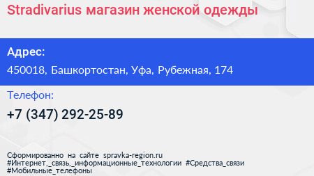 Stradivarius, магазин женской одежды по адресу 450018, Башкортостан, Уфа, Рубежная, 174 в дальнейшем Организация, размещена в следующих категориях: