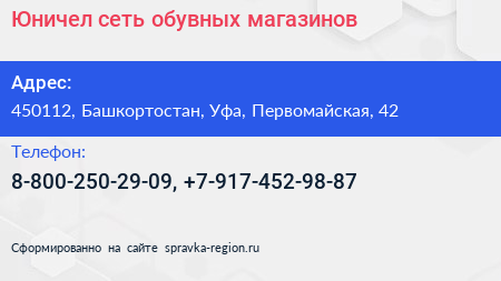 Юничел, сеть обувных магазинов по адресу 450112, Башкортостан, Уфа, Первомайская, 42 в дальнейшем Организация, размещена в следующих категориях: