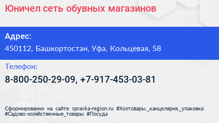 Юничел, сеть обувных магазинов по адресу 450112, Башкортостан, Уфа, Кольцевая, 58 в дальнейшем Организация, размещена в следующих категориях: