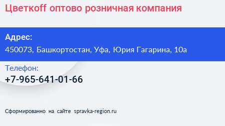 Цветкоff, оптово-розничная компания по адресу 450073, Башкортостан, Уфа, Юрия Гагарина, 10а в дальнейшем Организация, размещена в следующих категориях: