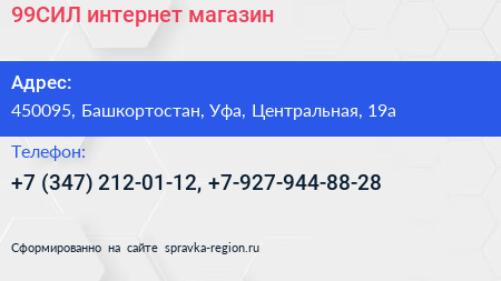 99СИЛ, интернет-магазин по адресу 450095, Башкортостан, Уфа, Центральная, 19а в дальнейшем Организация, размещена в следующих категориях: