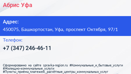 Абрис-Уфа по адресу 450075, Башкортостан, Уфа, проспект Октября, 97/1 в дальнейшем Организация, размещена в следующих категориях: