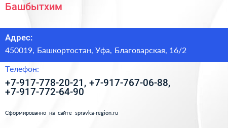 Башбытхим по адресу 450019, Башкортостан, Уфа, Благоварская, 16/2 в дальнейшем Организация, размещена в следующих категориях: