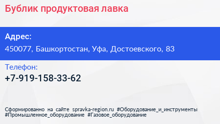 Бублик, продуктовая лавка по адресу 450077, Башкортостан, Уфа, Достоевского, 83 в дальнейшем Организация, размещена в следующих категориях: