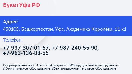 БукетУфа.РФ по адресу 450105, Башкортостан, Уфа, Академика Королёва, 11 к1 в дальнейшем Организация, размещена в следующих категориях: