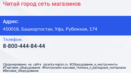 Читай-город, сеть магазинов по адресу 450018, Башкортостан, Уфа, Рубежная, 174 в дальнейшем Организация, размещена в следующих категориях: