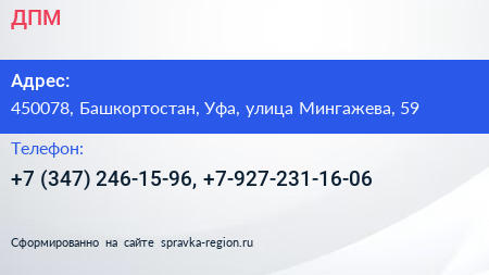 ДПМ по адресу 450078, Башкортостан, Уфа, улица Мингажева, 59 в дальнейшем Организация, размещена в следующих категориях: