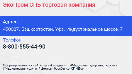 ЭкоПром СПБ, торговая компания по адресу 450027, Башкортостан, Уфа, Индустриальное шоссе, 7 в дальнейшем Организация, размещена в следующих категориях: