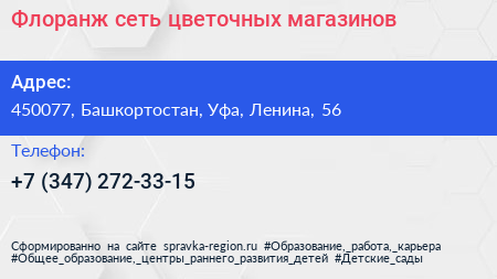 Флоранж, сеть цветочных магазинов по адресу 450077, Башкортостан, Уфа, Ленина, 56 в дальнейшем Организация, размещена в следующих категориях: