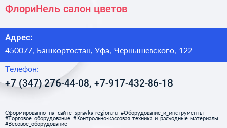 ФлориНель, салон цветов по адресу 450077, Башкортостан, Уфа, Чернышевского, 122 в дальнейшем Организация, размещена в следующих категориях: