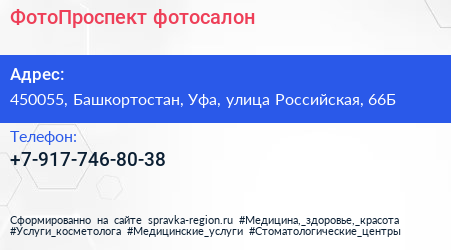 ФотоПроспект, фотосалон по адресу 450055, Башкортостан, Уфа, улица Российская, 66Б в дальнейшем Организация, размещена в следующих категориях: